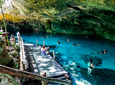 Explora los templos piramidales y otros monumentos de Chichén Itzá • Nade en el subterráneo "cenote" en Hubiku...